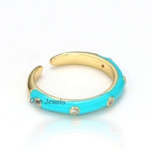Home / 925 Silver Diamond Ring, Designer Enamel Ring, Adjustable Gold Vermeil Ring, Women Wedding Ring / OJC-05109-1