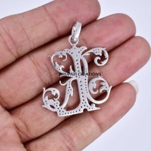 Home / 925 Silver KL Monogram, Diamond KL-LK Monogram Pendant, Handmade Silver Diamond Initial Pendant / BOTP-00509-1