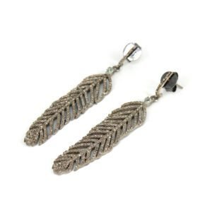Home / diamond feather earring, 925 silver pave diamond feather earring jewelry / GEMJE009-3