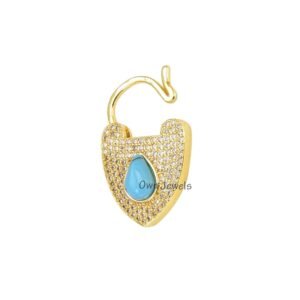 Home / 14k Gold Varmeil Padlock, Designer Padlock, Diamond Designer Padlock, Turquoise Padlock / OJC-05149-1
