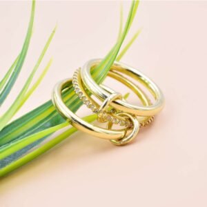 Home / 14K Yellow Gold Vermeil Band Ring, Single Cut Diamond 3 Set Band Ring, Enter Locking Band Ring / AJOC396-2