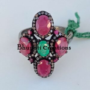 Home / Natural Ruby Gemstone Rings, 925 Sterling Silver Gemstone Ring, Ruby Pave Diamond Ring, Women Diamond Rings, Emerald Gemstone Diamond Ring / BOTR-0159