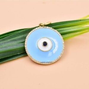 Home / 14K Gold Vermeil Round Evil Eye Pendant, Single Cut Diamond Evil Eye Pendant, White Enamel Pendant / AJOC264-1